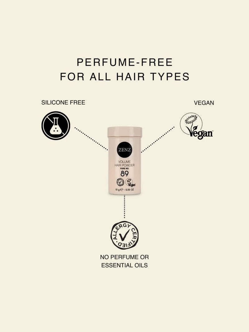 Pure Copenhagen Hair Powder No. 89 von Danish Zenz. Es ist ein schwanen- und allergiegeprüftes Haarpuder, das sowohl bei kurzem als auch bei langem Haar für maximale Fülle und Halt sorgt. Das Pulver absorbiert Schmutz und Fett aus den Haarsträhnen und verleiht dem Haar ein sauberes und gesundes Aussehen. Volume Hair Powder Nr. 89 ist ein Haarpuder für alle Haartypen. Besonders geeignet, um glattem Haar Volumen zu verleihen.